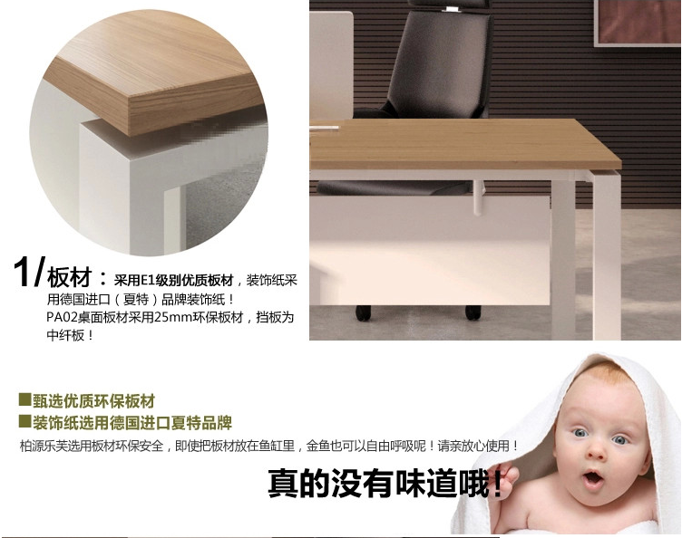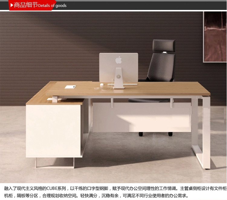 上海主管桌選材搭配嚴謹,個性、自我、品味時尚,融入生活與工作情調。因地制宜,設計簡練、明了,給使用者全新的感官享受。所有基材均采用E1級環保板制作,經過高溫、控水處理后,永不變形,從而其使用美觀大方,結實牢靠,尺寸可根據現場定制,能滿足您使用需要。