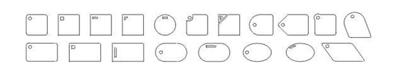 薄膜開關(guān)按鍵的各種形狀:鍵體外形與大小的設(shè)計(jì),應(yīng)從整個(gè)面板的大小及按鍵數(shù)量的多少來考慮。按鍵太小,操作比較費(fèi)力;按鍵太大,則影響美觀,且不宜按準(zhǔn)有效操作區(qū)域。另外,如果按鍵凸起,應(yīng)選擇帶圓角的矩形、圓形、橢圓、長圓等外形比較圓滑的形狀;按鍵不凸起時(shí),則可選擇任意形狀,以略大于后部電路觸點(diǎn)為好。在鍵體上設(shè)置指示窗,一般情況下,以左上角為好。指示窗的形狀雖可自由設(shè)計(jì),但應(yīng)注意盡量與鍵體的外形輪廓相適應(yīng),譬如,帶圓角的鍵體,宜采用圓形指示窗,方角鍵體宜采用方形或長方形指示窗,以增進(jìn)外觀的協(xié)調(diào)。在同一面板上各單元內(nèi)的指示窗位置及形狀應(yīng)趨于一致。常見鍵體外形與指示窗位置、形狀見下圖